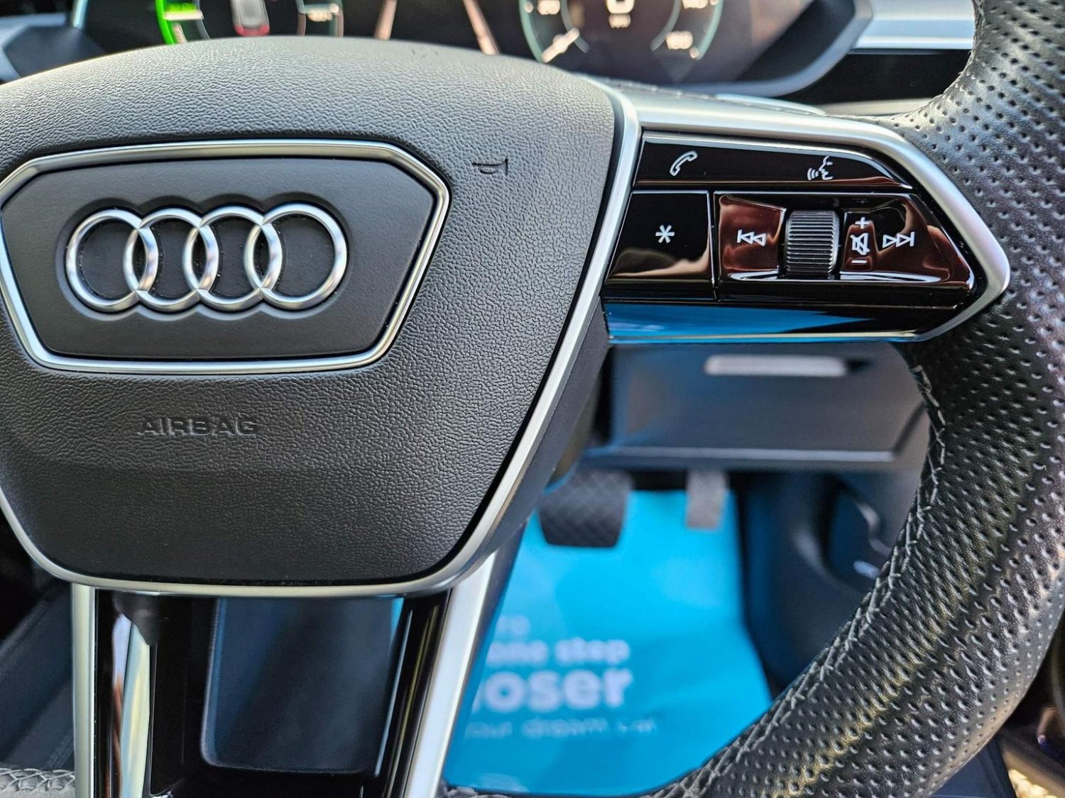 • 3-Spoke Flat Bottom Multi-Function Leather Steering Wheel with Paddles for Recuperation